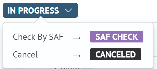 To change an incident's status, click the status button and select the desired transition from the dropdown list.