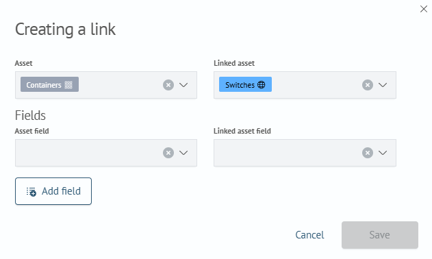 To create a new link, click Add Relation, then select the asset configurations to link and provide the field mapping details: